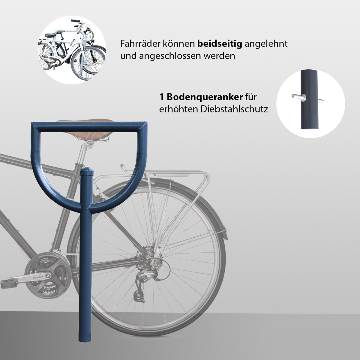 Fahrradanlehnbügel 115 x 52 cm aus pulverbeschichtetem Stahl, Rohrdurchmesser Ø 60 mm, Fahrradständer zum Einbetonieren mit Bodenqueranker, geei...