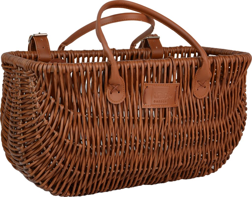 UNUS Fahrradkorb Gepäckträgerkorb Kunststoff Weidenoptik hinten Henkel in braun
