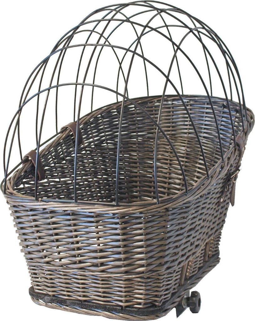 UNUS Fahrradkorb Gepäckträgerkorb aus Weide hinten grau mit Henkel