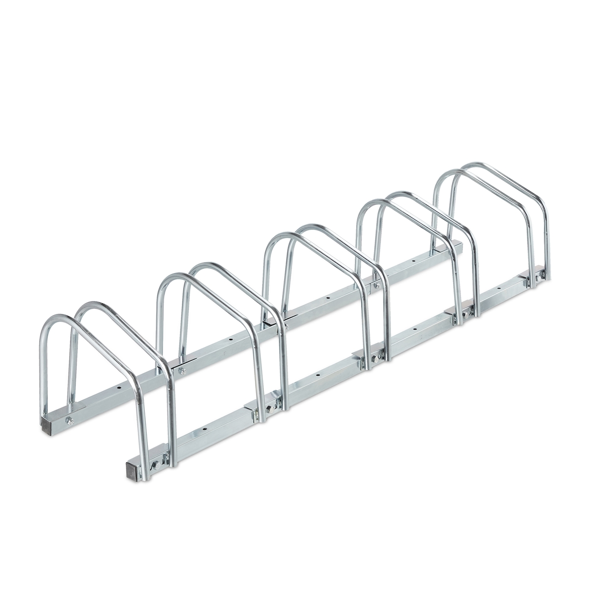 Relaxdays Fahrradständer Boden, für 5 Räder, bis 60 mm Reifenbreite, Metall, Garage, Fahrrad-Aufstellständer, silber