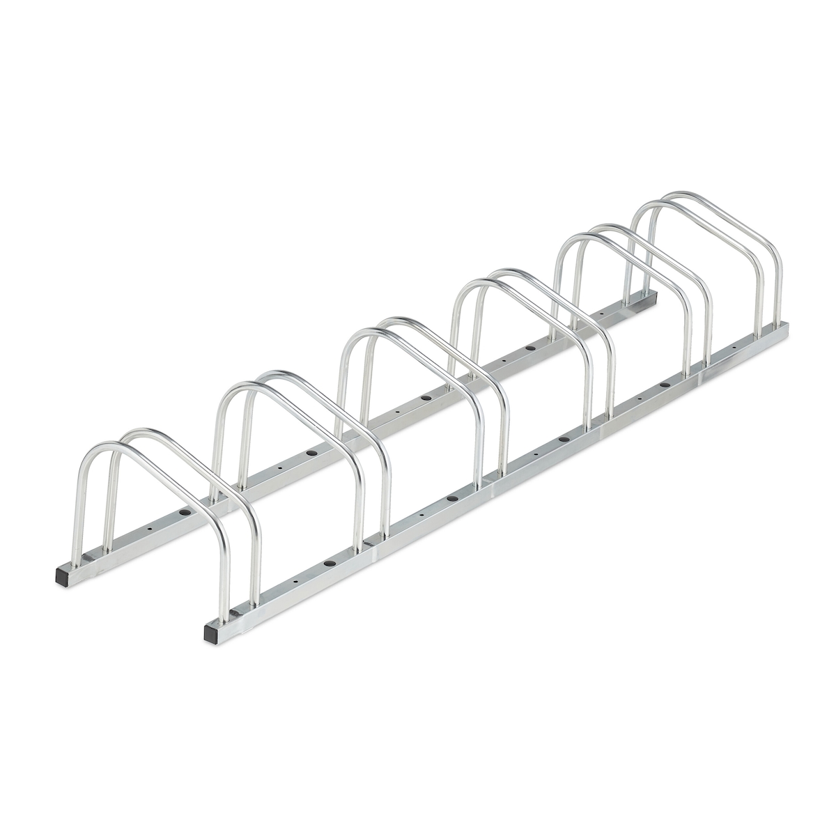 Relaxdays Fahrradständer Boden, für 6 Fahrräder, bis 50 mm Reifenbreite, Metall, Garage, Fahrrad-Aufstellständer, silber