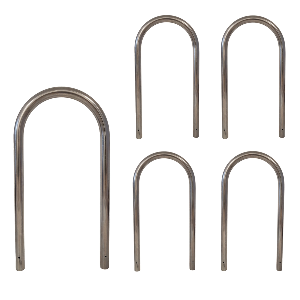 5 x Fahrradanlehnbügel 115 x 41 cm Edelstahl Ø 49 mm grau Einbetonieren Fahrradständer Parker Typ U