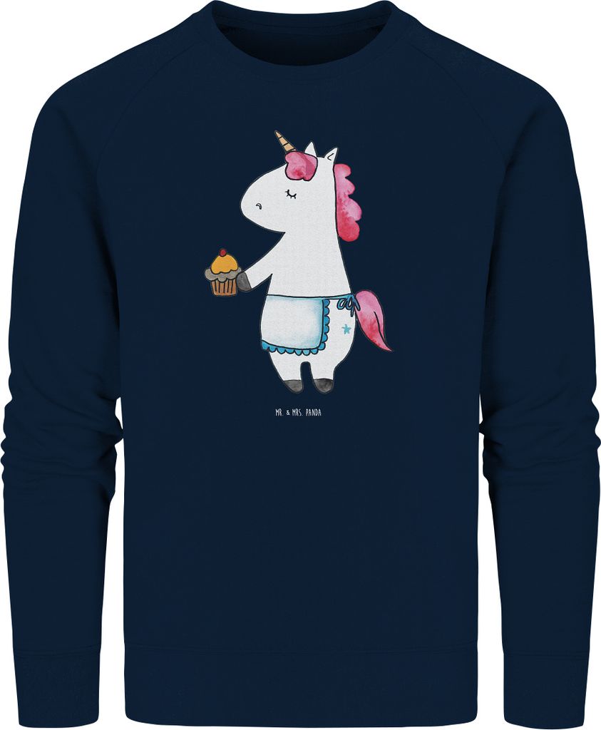 Mr. & Mrs. Panda Fair Fashion Pullover Einhorn Muffin Größe XS - French Navy - Geschenk, Baumwoll, Geburtstagsgrüße, Sweater, Bio-Pullover, Swe...