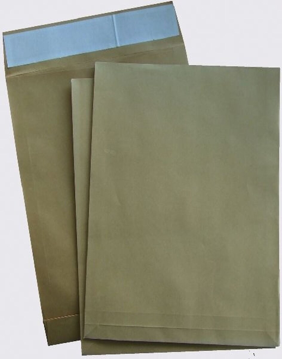 Faltentaschen Recycling - B4 ohne Fenster 20 mm-Falte Klotzboden haftklebend 130. Packung mit 10 Stück
