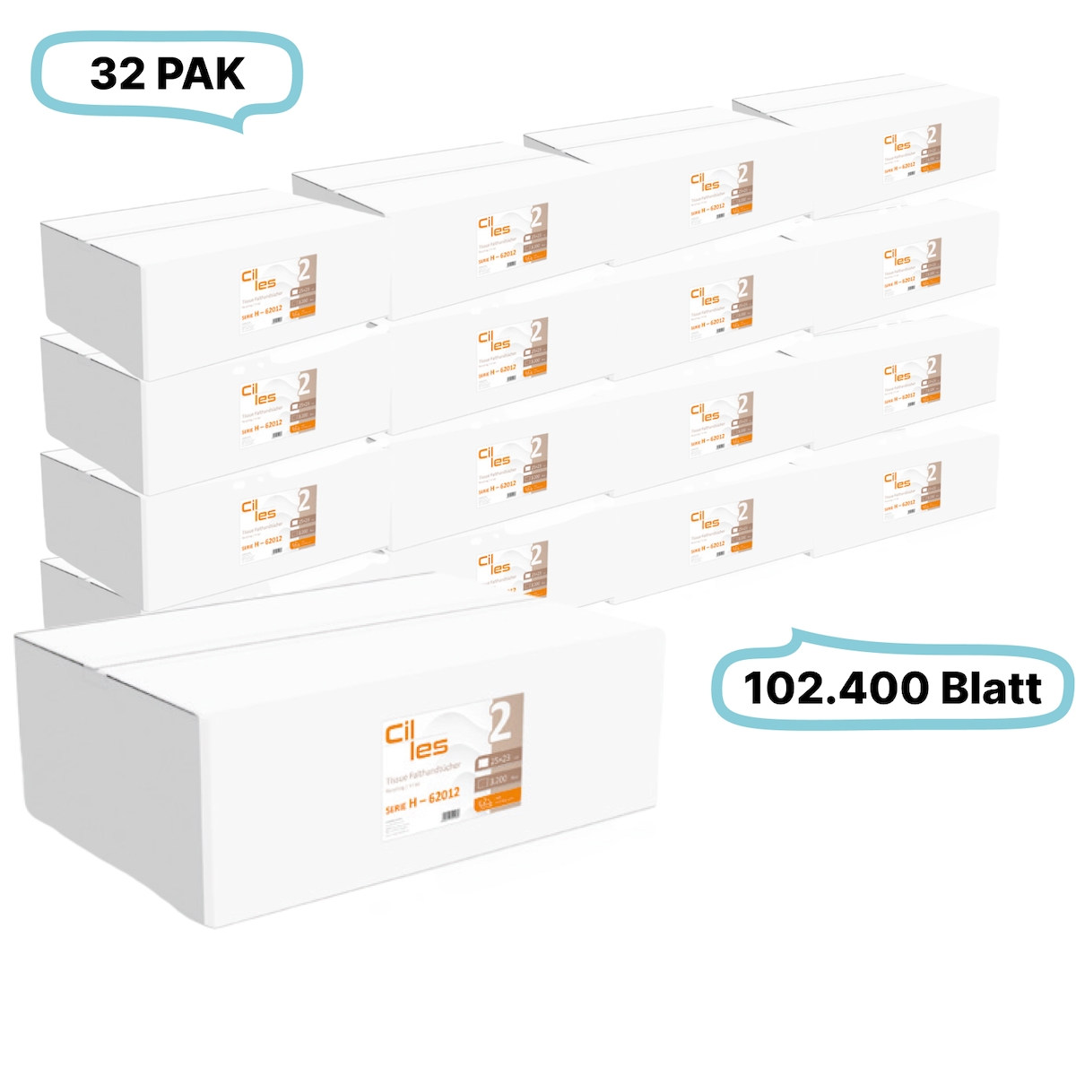 Falthandtücher 25x21cm, 2-lg, 32 Pak, 102.400 Blatt gesamt, 3.200 Blatt/ Pak, Recyclingpapier, V-Falz, CIL- les Tissue, Series H