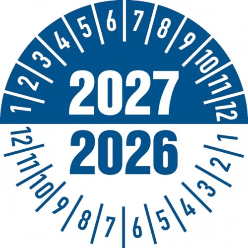 König Werbeanlagen Jahresprüfplaketten ab 27, 2-farbig 2 Jahreszahlen, Folie, Ø 30 mm - Bogen = 10 Plaketten - 30 mm Folie selbstklebend