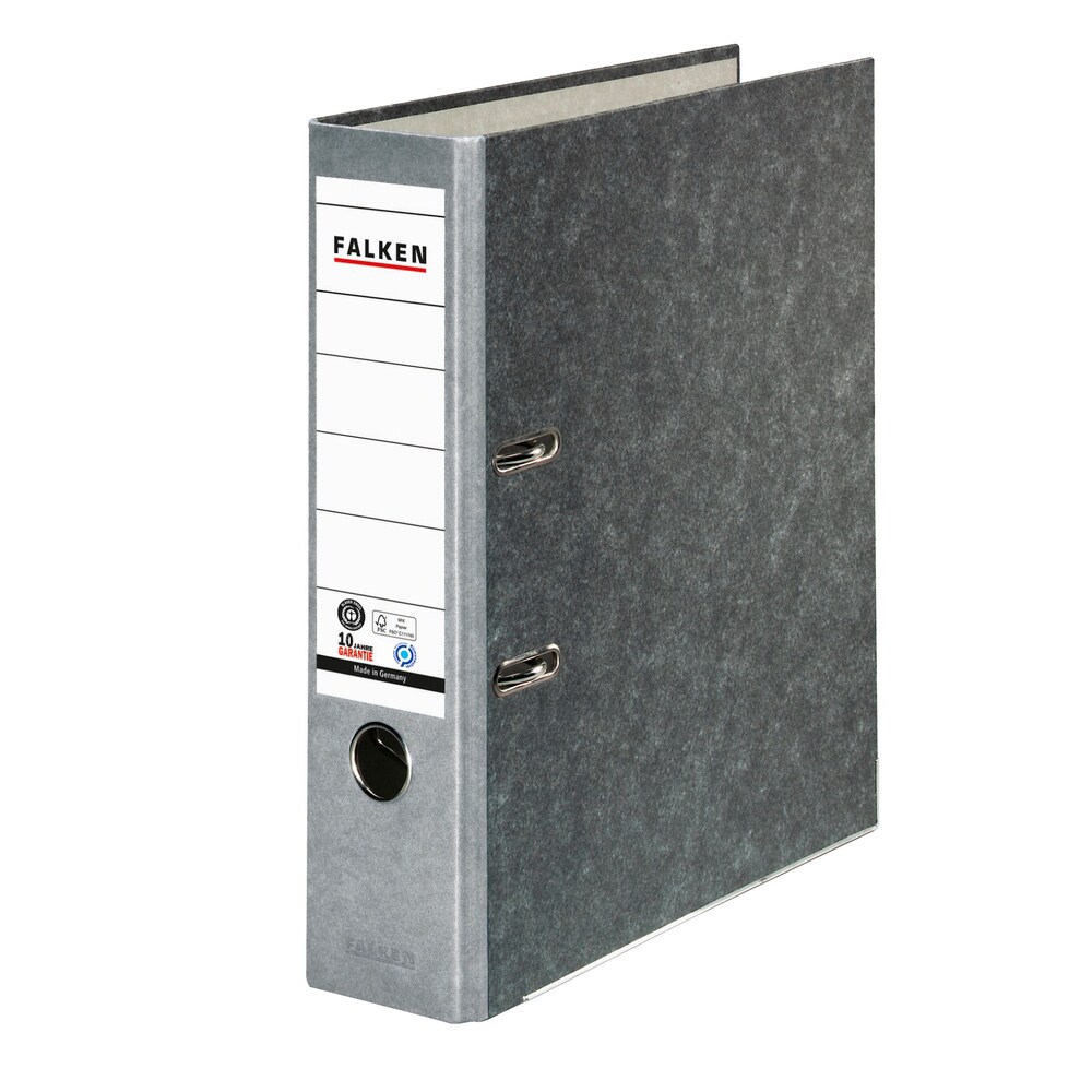 Falken 80024136 20x Recycling-Wolkenmarmor-Ordner A4, farbiger Rücken 80mm - Grau - Rücken schwarz