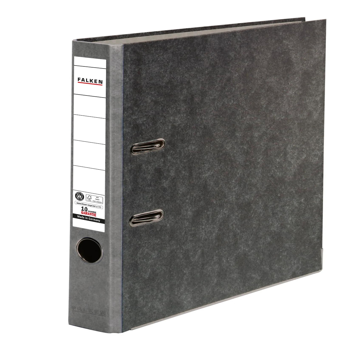 Falken 80022700 Recycling-Wolkenmarmor-Ordner A4, farbiger Rücken 50mm - Grau - Rücken schwarz