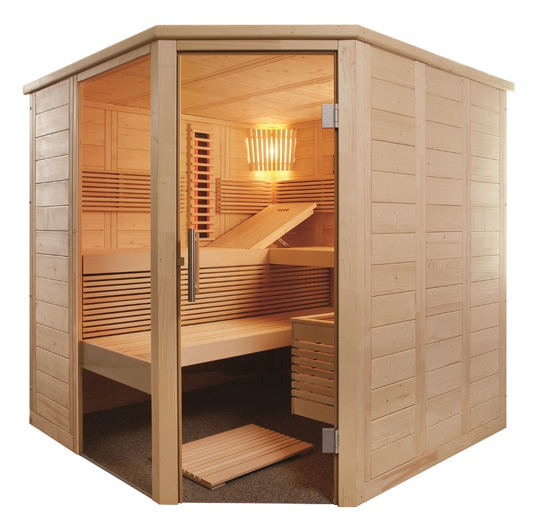 Saunahaus Außensauna Saunafass Fasssauna Quadro 1 PLUS unbehandelt ohne Zubehör 38mm Massivholz 242x175x205 cm