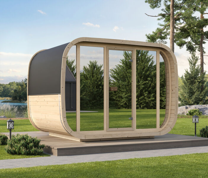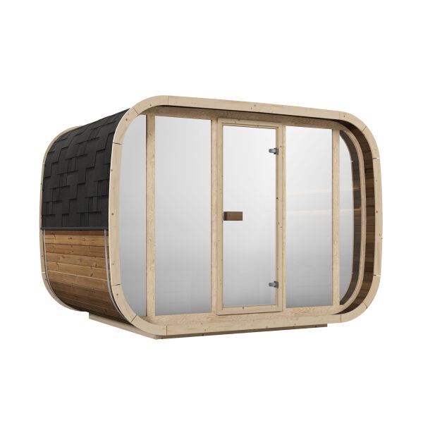 Artsauna Cube Fasssauna Fjora für 6 Personen, mit 9kW Ofen, Glasfront & Zubehör