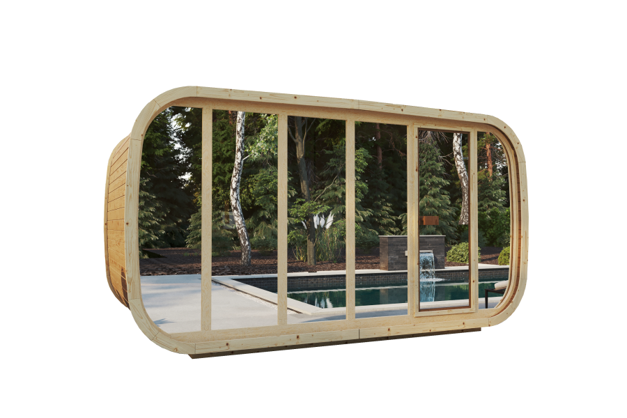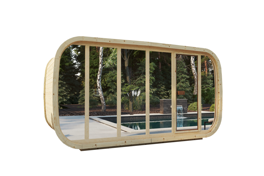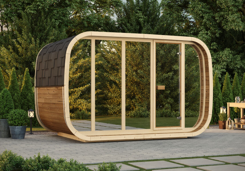 FinnTherm Fasssauna ScandiPod Comfort mit Glasfront