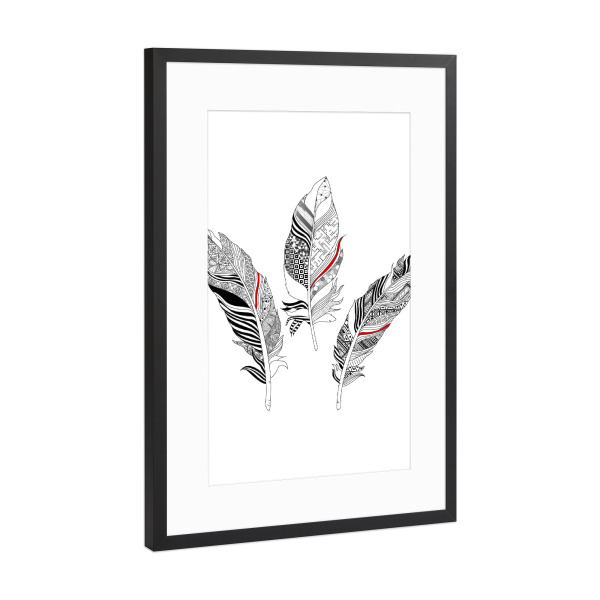 Poster mit Rahmen Schwarz (Metallic) "Stammes-Federn" artboxONE - Natur,Tiere,Abstrakt - Feder,Vogel,Tier,Natur,Stammes-,Mandala,Zen,Yoga