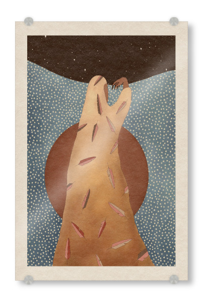 Acrylglasbild "Pink Priest - Peaking" artboxONE - Comic,Menschen,Fiktion,Galaxy - Himmel,Planet,Mond,Sonne,Sterne,Weltraum,Weltall,All,Feder,Person