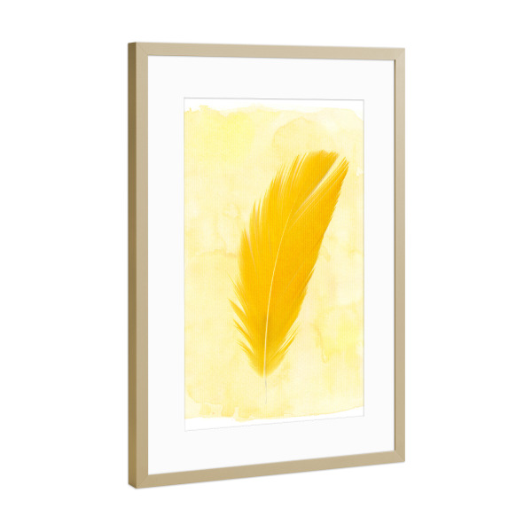 Poster mit Rahmen Gold "Yellow Feather" artboxONE - Natur,Für Kinder,Abstrakt - Feder,Aquarell,Gemälde,Leinwand,Gelb,Abstrakt