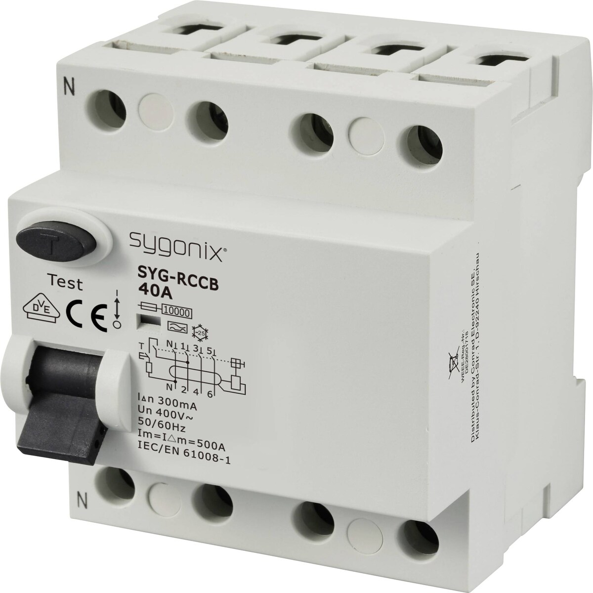 Sygonix SY-6438022 SYG-RCCB 3P+N/A40/10kA/300mA Fehlerstrom-Schutzschalter A 4polig 40 A 0.3 A 400 V/AC