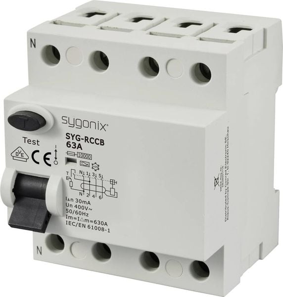 Sygonix SY-6438020 SYG-RCCB 3P+N/A63/10kA/30mA Fehlerstrom-Schutzschalter A 4polig 63 A 0.03 A 400 V/AC
