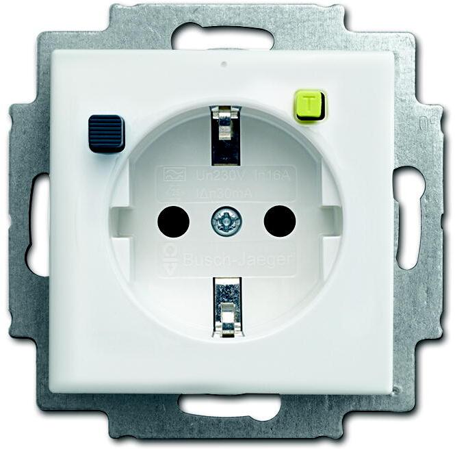 Busch-Jaeger 3120 EUCB-914 FI-SCHUKOMAT SCHUKO Steckdosen-Einsatz mit Fehlerstrom-Schutzschalter, Busch-balance Si, alpinweiß (2CKA003116A0663)