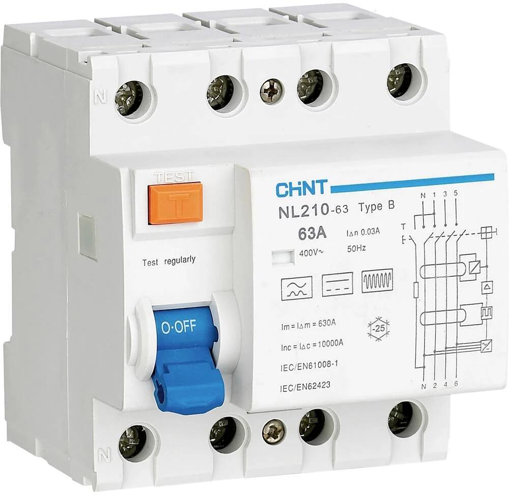 Chint 782000 Fehlerstrom-Schutzschalter allstromsensitiver FI B/10 kA 3polig 63A 0.03A