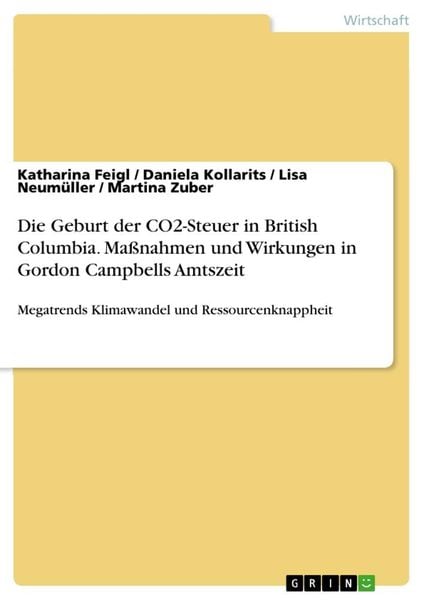Die Geburt der CO2-Steuer in British Columbia. Maßnahmen und Wirkungen in Gordon Campbells Amtszeit, Taschenbuch von Katharina Feigl , Daniela