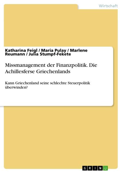Missmanagement der Finanzpolitik. Die Achillesferse Griechenlands, Taschenbuch von Katharina Feigl , Maria Pulay , Marlene Reumann , Julia