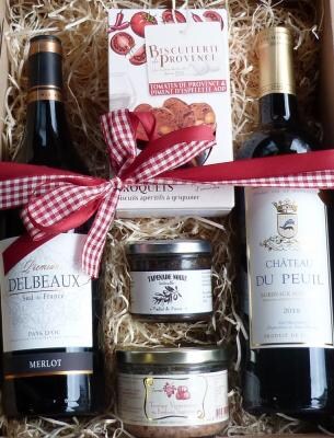 DieGeschenkkorbmacher Französische Rotwein Geschenkbox, 5-tlg., 2 Rotweine und dazu passende Feinkost