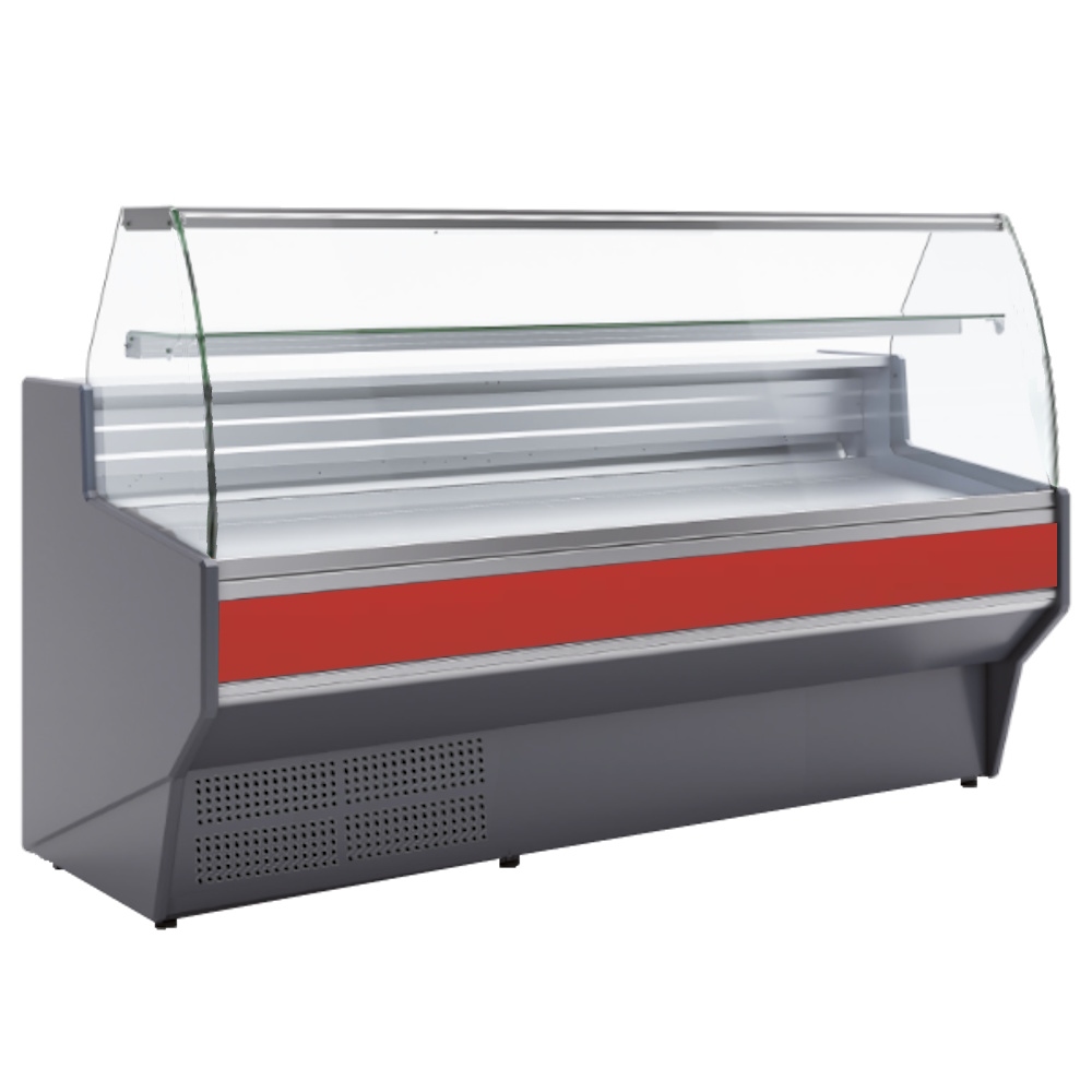 Vitrine-theke mit gebogenem glas für feinkost in rot - 2465x940x1235 mm - 1400 W 230/1V - 24X24249 Eurast