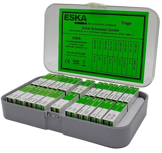 ESKA E3520800 Sortimentskasten, 5x20mm, Feinsicherungen, 100mA-6,3A, flink, 360 Stck.