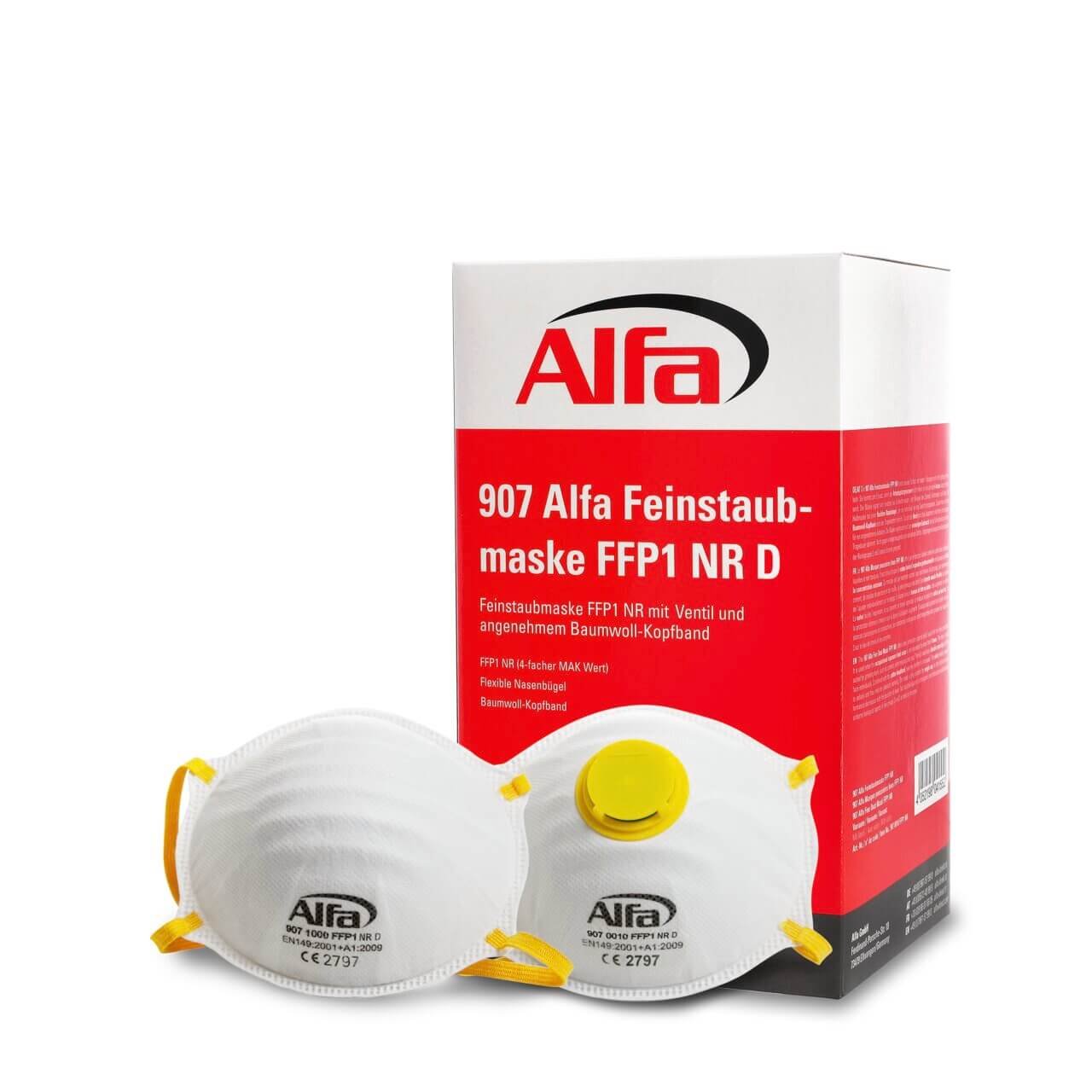 20 x Alfa Feinstaubmaske FFP1 - ohne Ventil | mit Baumwoll-Kopfband | ideal um Schutz vor Feinstaub und wässrigen Aerosolen zu bieten