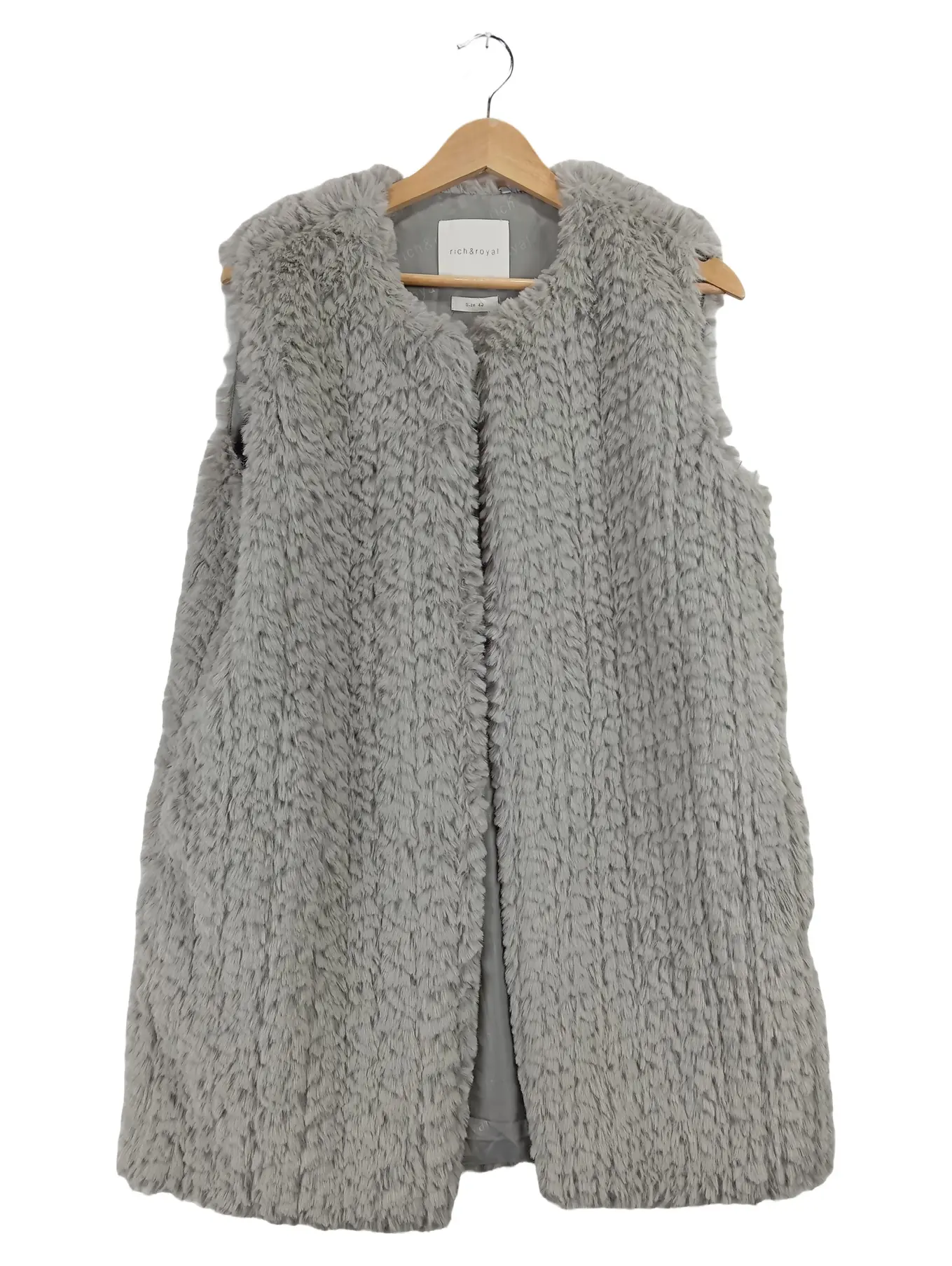 RICH & ROYAL Damen Fellweste Kunstpelz Weste Gr. 40 Grau Kuschelig