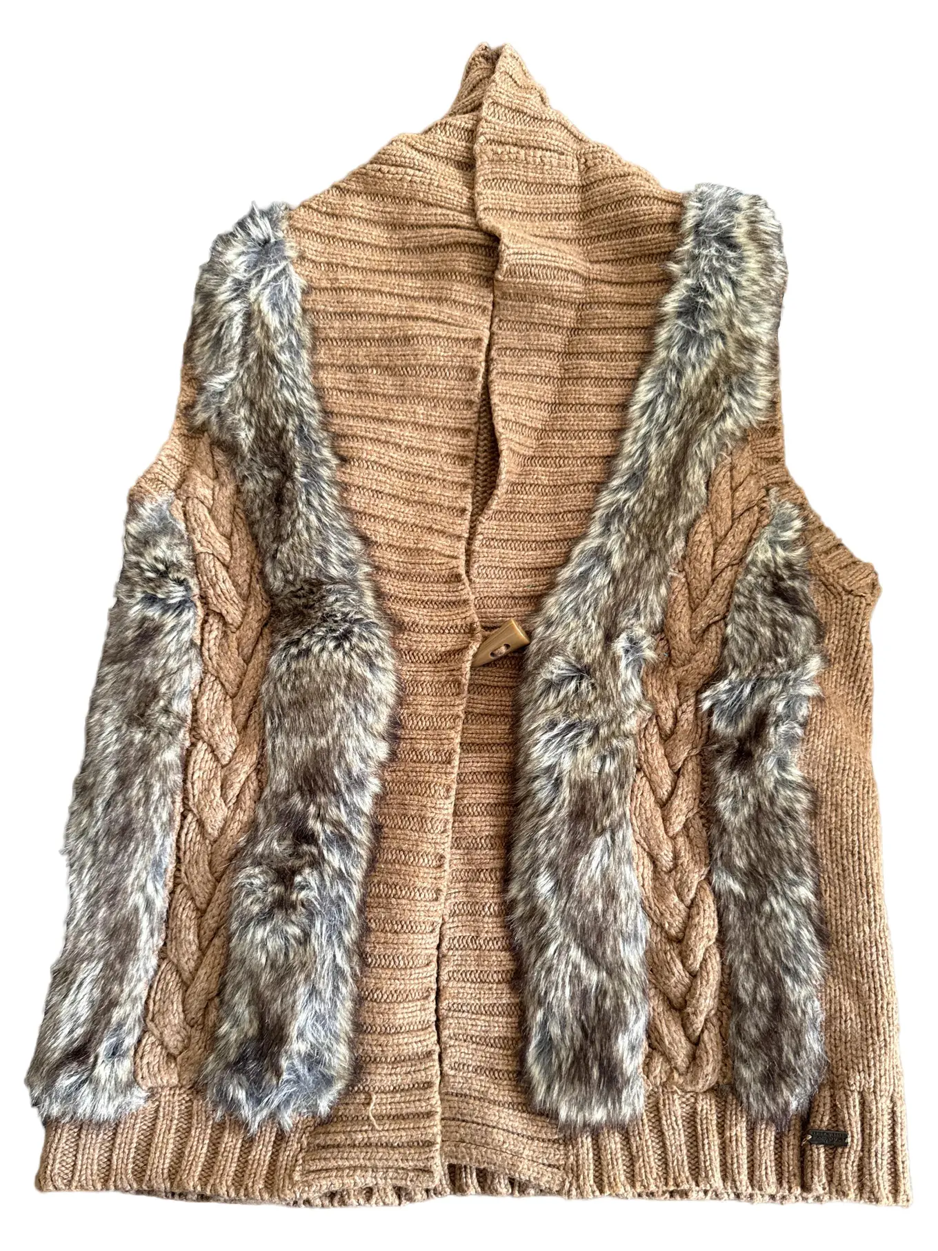 BOYSEN'S Damen Fellweste Gr. 36/38 S Beige Casual Strick Kunstfell