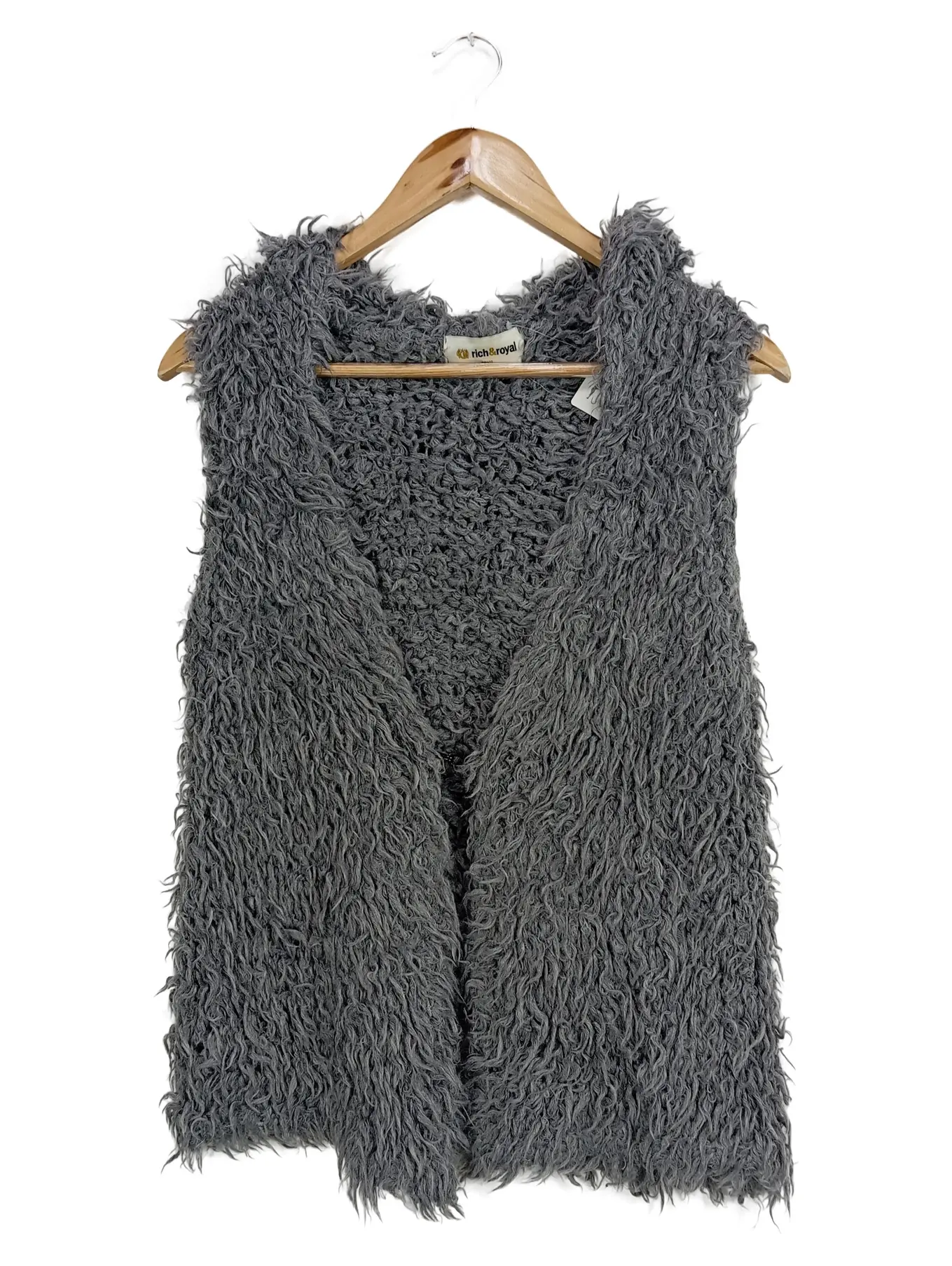 RICH & ROYAL Fellweste Damen Gr. S Grau Kunstfell Weste Boho