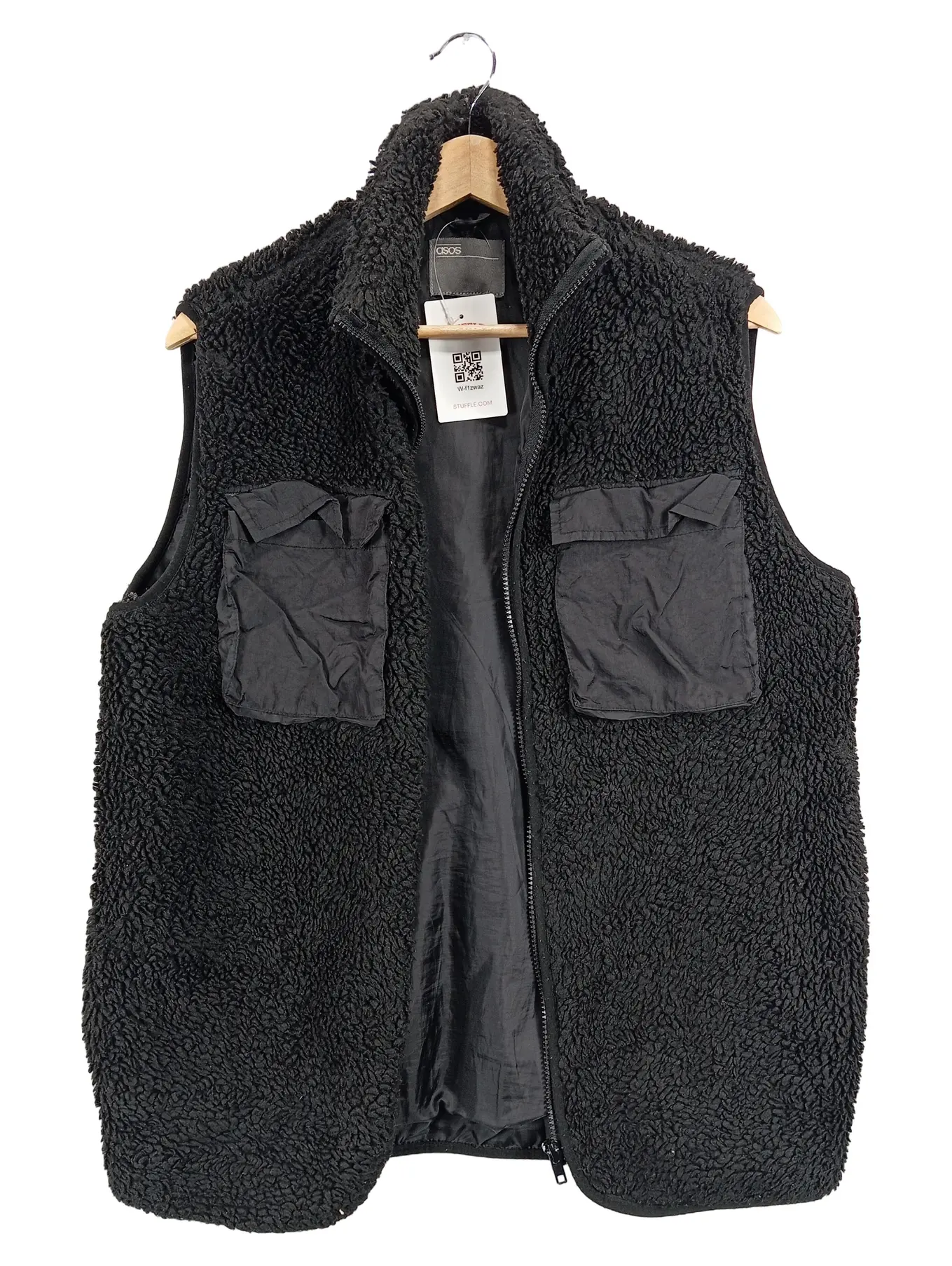 ASOS Herren Fellweste Teddy Fleece Weste Reißverschluss Schwarz Gr. XS