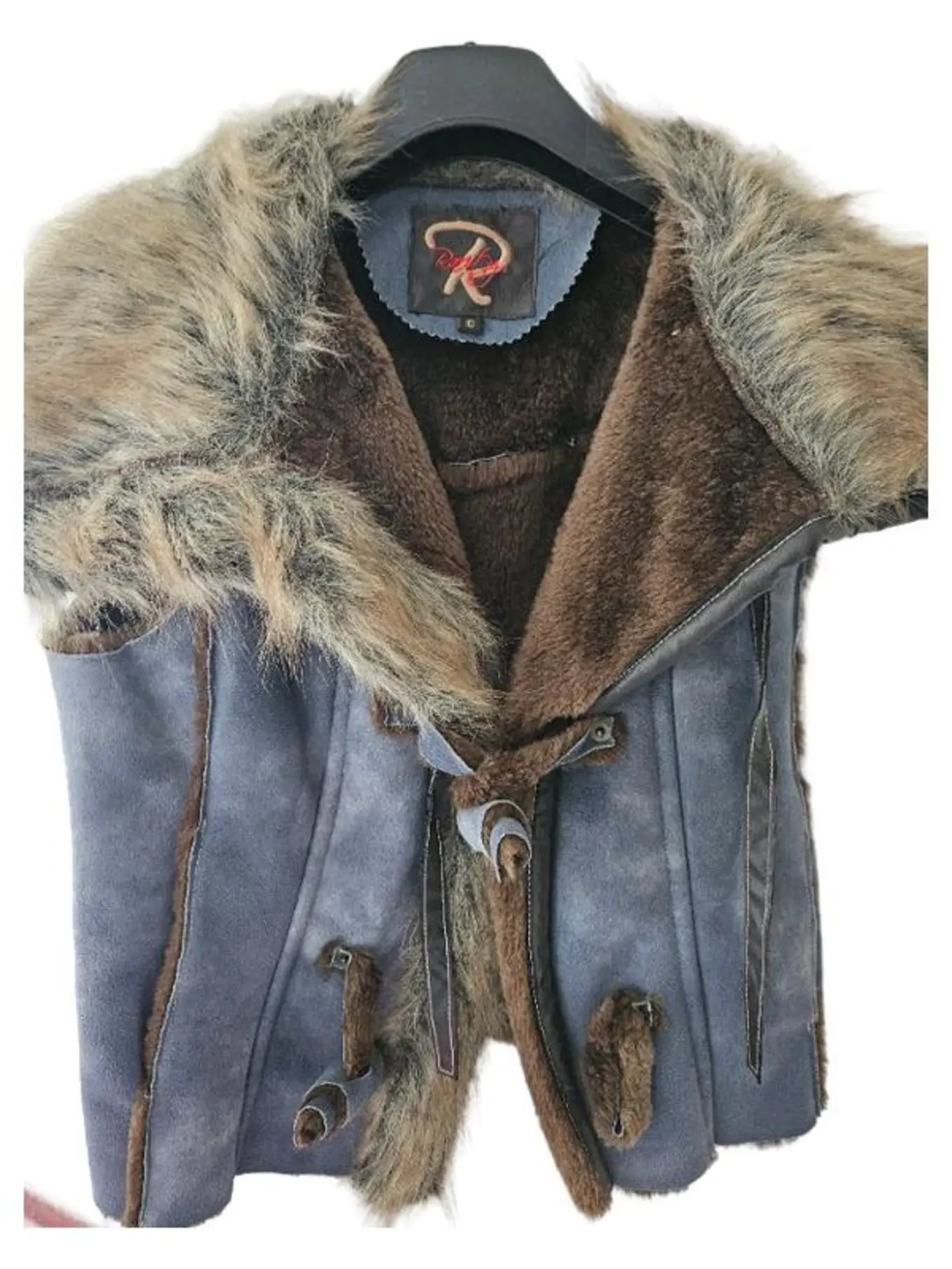 MARKENLOS RAnty Fellweste Damen Gr. M/10 Blau Kunstfell Weste Winterweste