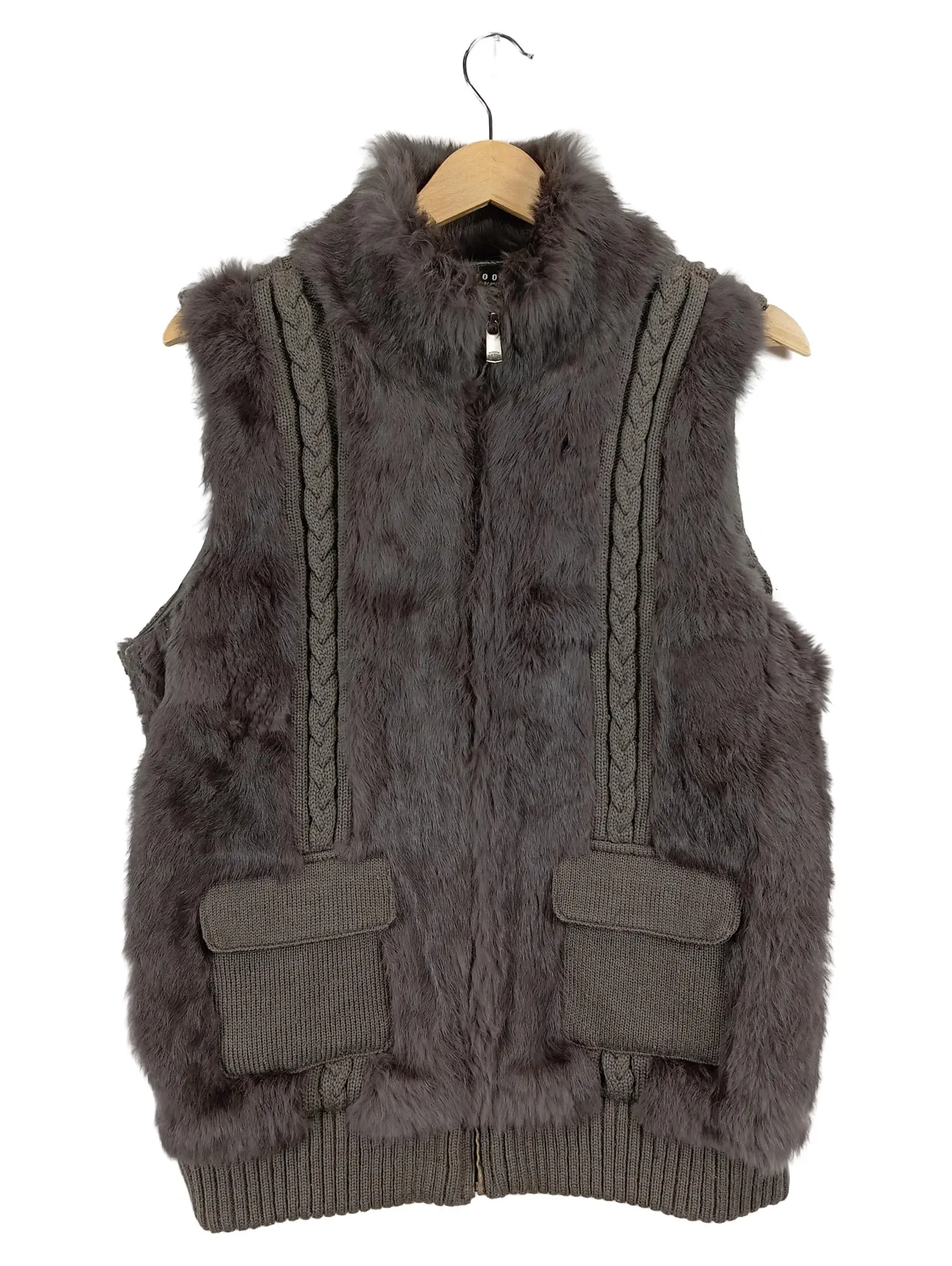 OAKWOOD Damen Fellweste Kunstpelz Zopfmuster Gr. 34/S Grau Elegant