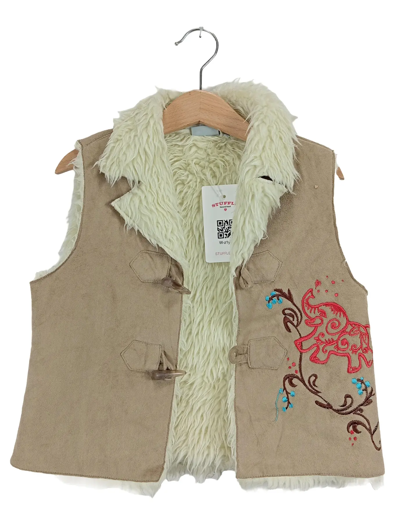 ALIVE Kinder Fellweste Gr. 116 Beige Elefanten Stickerei Bohemian