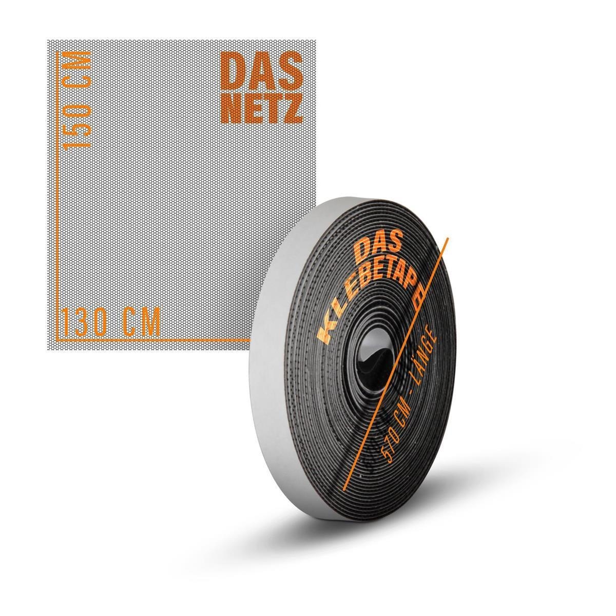 Fliegengitter-Set von 2 130 x 150 cm Selbstklebender Insektenschutz für Fenster mit 2 Rollen Klettband und 10 Reparatur-Patches - Grau