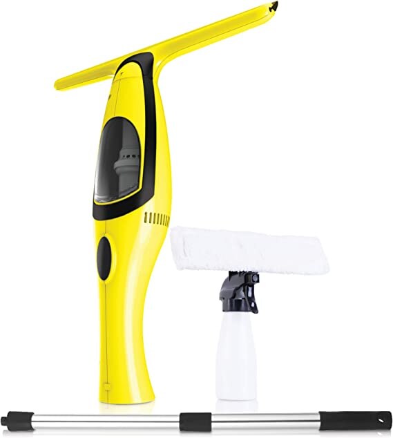 Fenstersauger Set - Elektrischer Fensterreiniger - Teleskopstiel & Sprühflasche - 280 mm Abziehlippe - Für Fenster, Spiegel, Fliesen, Glas - Gelb