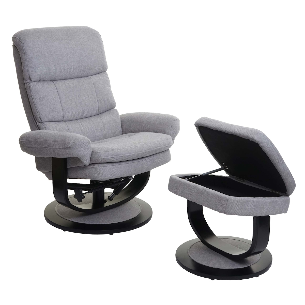 Mendler Relaxsessel HWC-C16, Fernsehsessel TV-Sessel Hocker mit Staufach, MVG-zertifiziert ~ Stoff/Textil hellgrau