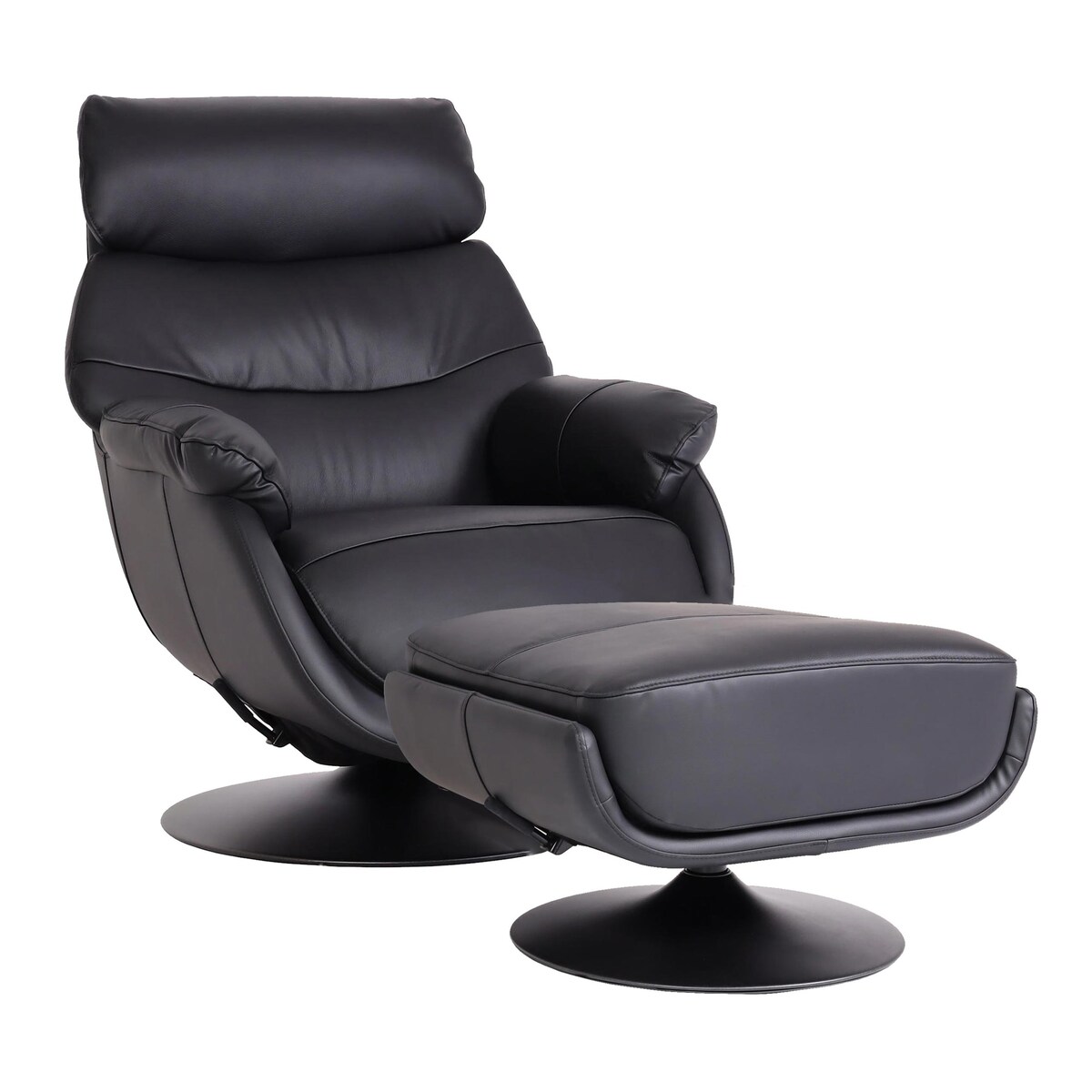 Mendler Relaxsessel mit Hocker HWC-K99, Fernsehsessel Sessel, Wippfunktion drehbar, Metall Echtleder/Kunstleder ~ schwarz