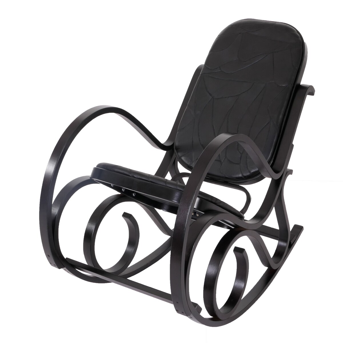 Mendler Schaukelstuhl M41, Schwingsessel Fernsehsessel, Massiv-Holz ~ Walnuss-Optik, Patchworkleder schwarz
