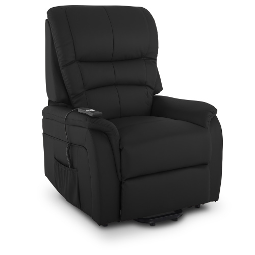 Fernsehsessel mit Aufstehhilfe, Relaxsessel mit elektrischer Liegefunktion, 2 Motoren, 120 kg belastbar, Kunstleder, Schwarz, Raburg Jan