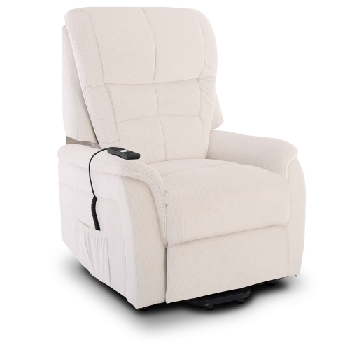 Fernsehsessel mit Aufstehhilfe, Relaxsessel mit elektrischer Liegefunktion, 2 Motoren, 120 kg belastbar, Webstoff, Weiß, Raburg Jan