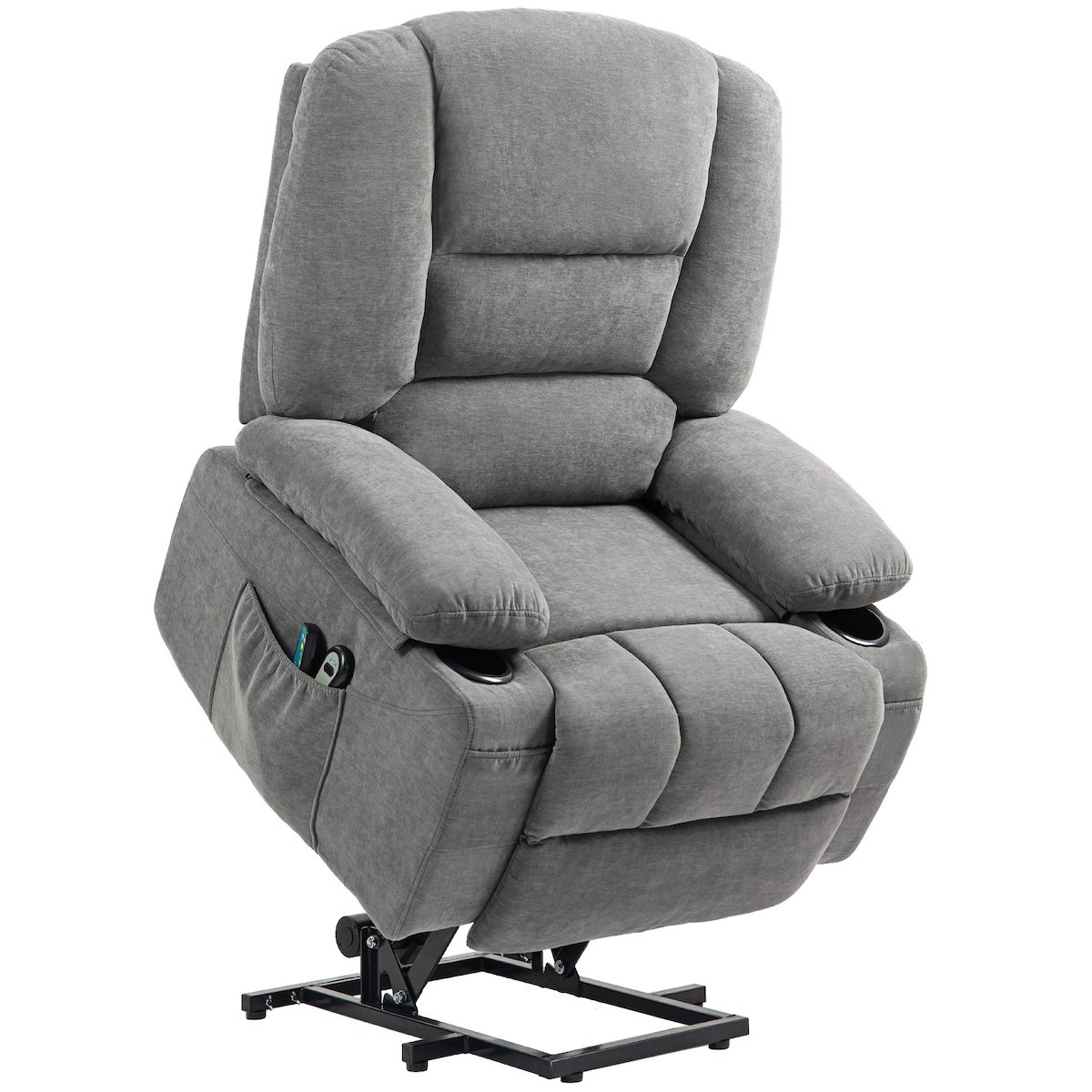 Merax Elektrischer Relaxsessel, Massagesessel mit 8-Punkt-Massa und Heizfunktion, Fernsehsessel mit Hebefunktion, Stoffsofa mit Staufach, Grau