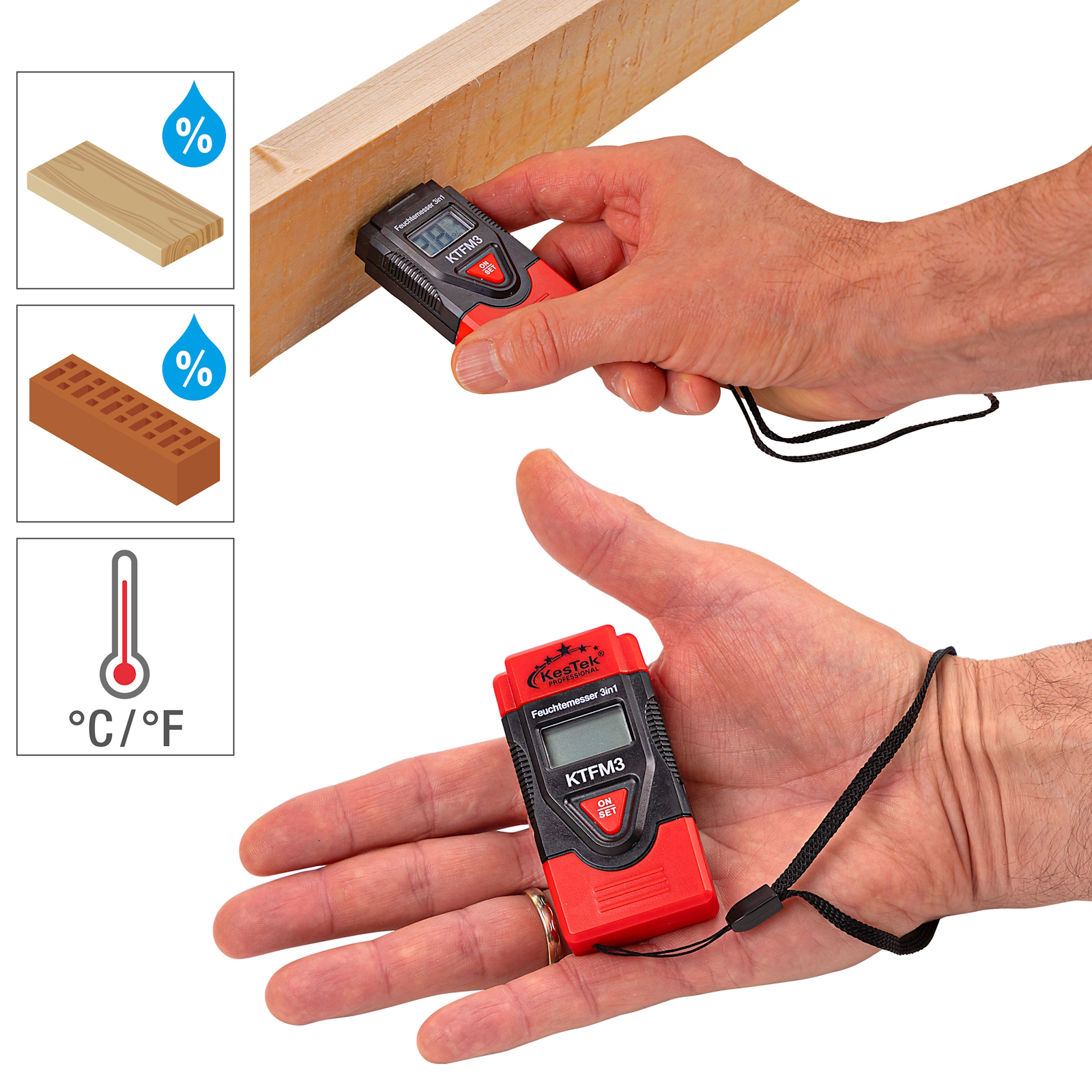 Kestek Feuchtigkeitsmessgerät 3in1 KTFM3 – Holzfeuchtemesser, Materialfeuchtemessgerät, Feuchtigkeitsdetektor – präzise, einfach, tragbar – f