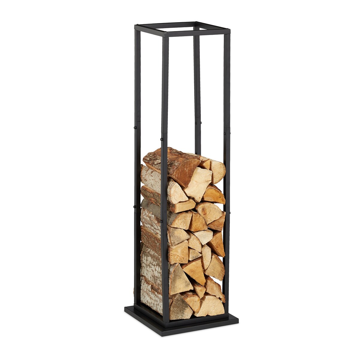 Relaxdays Kaminholzregal, Metall, modern, HBT: 62x60x49 cm, Brennholzregal Feuerholz, Stapelholz & Brennholz, schwarz