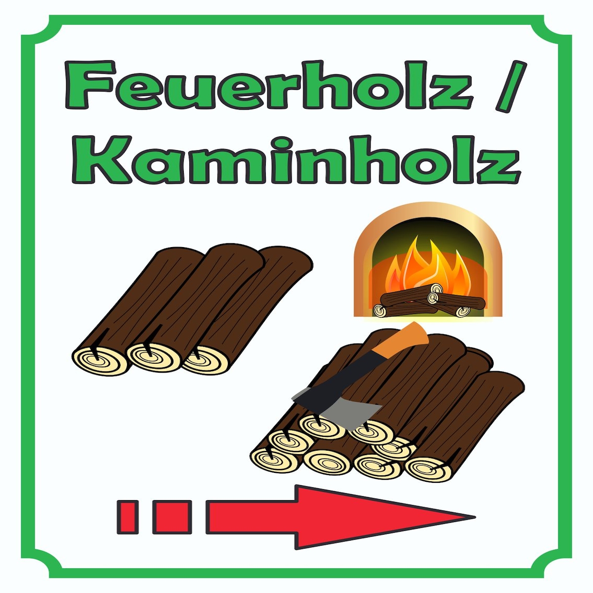 Werbeaufkleber Aufkleber Feuerholz mit Pfeil nach rechts A3 (297x420mm)