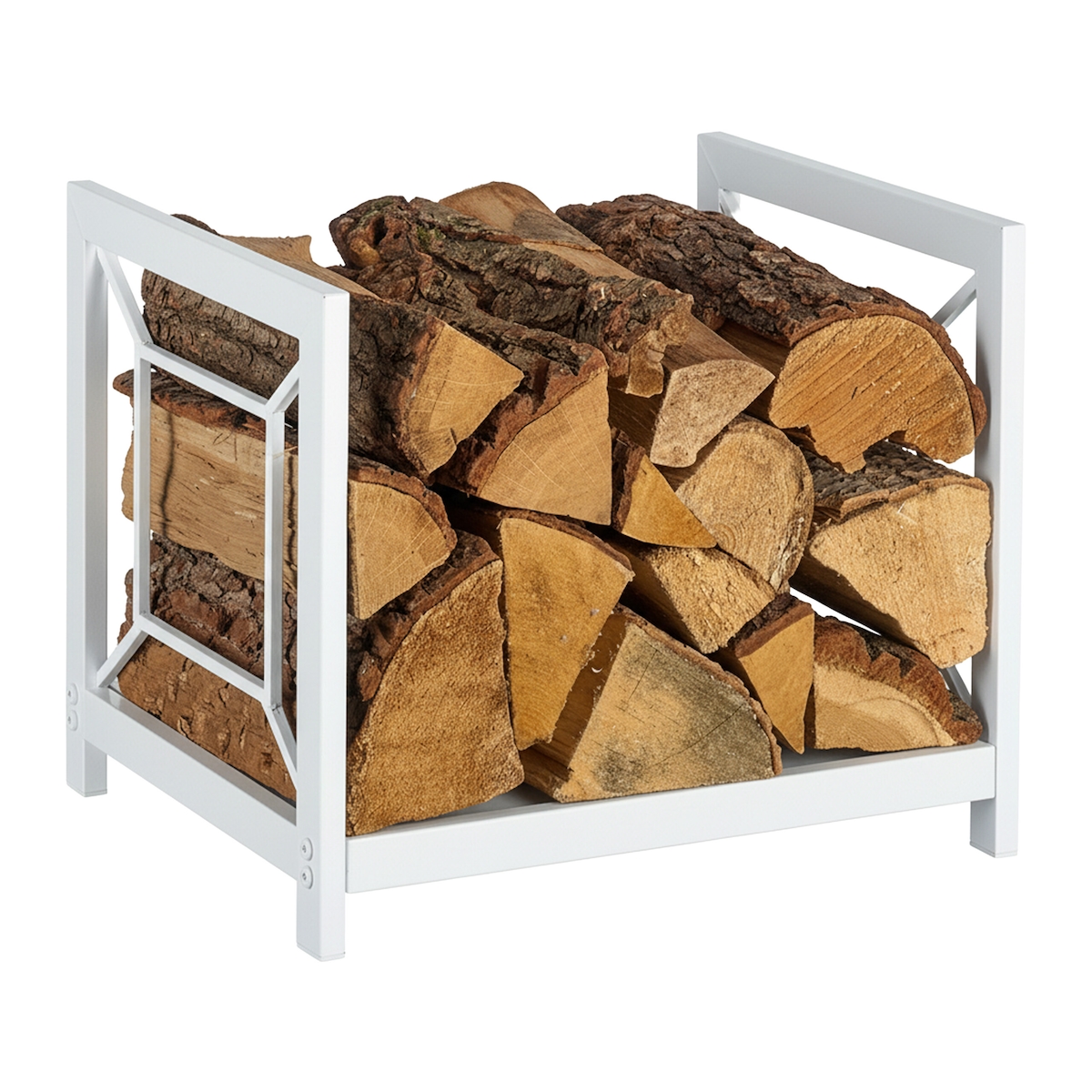 Relaxdays Kaminholzregal, Metall, HBT: 62,5 x 65 x 30,5 cm, Brennholzregal für Feuerholz, Stapelholz, Brennholz, weiß