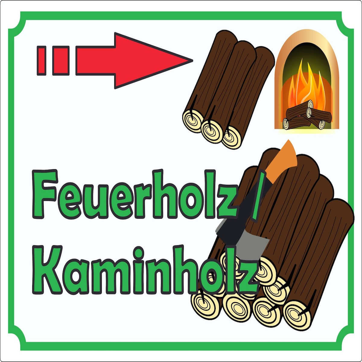 HB-Druck Werbeaufkleber Aufkleber Feuerholz mit Pfeil nach rechts A4 (210x297mm)