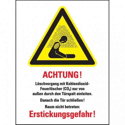 Löschvorgang mit CO2-Feuerlöscher durch Türspalt, Folie, 250x150 mm