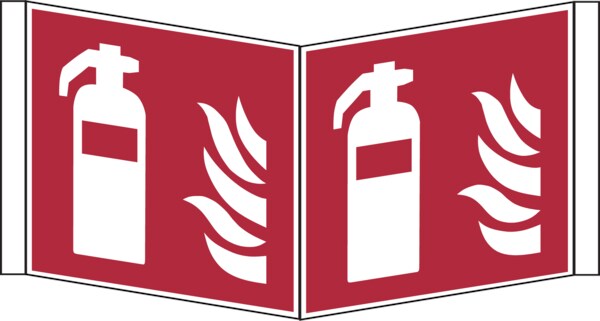 Brandschutzzeichen, Feuerlöscher Winkelschild - ASR A1.3 (DIN EN ISO 7010) - 300x300x1 mm Kunststoff nachleuchtend
